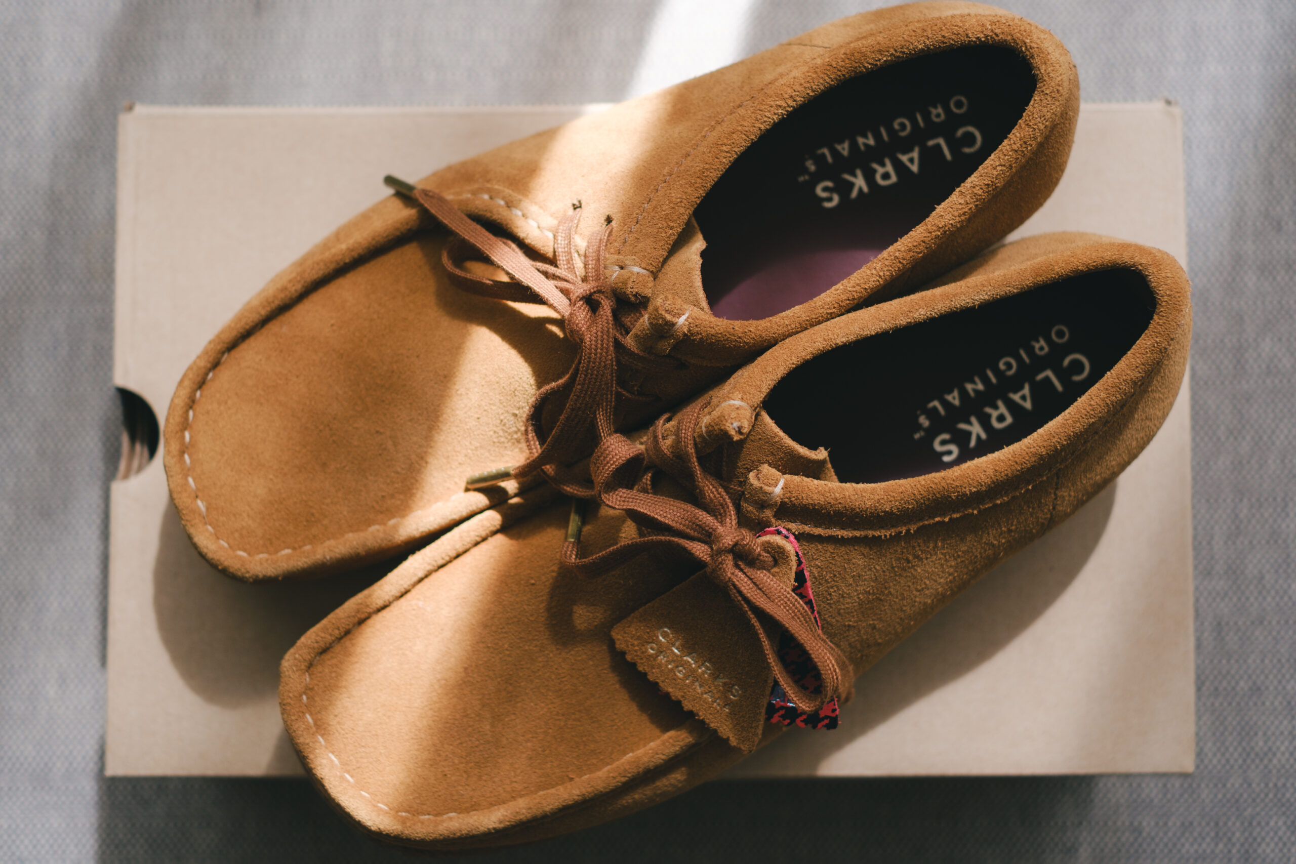 今年の誕生日に妻に買ってもらったクラークスのワラビー。気に入って履きまくっていたらデニムの色移りが…。
