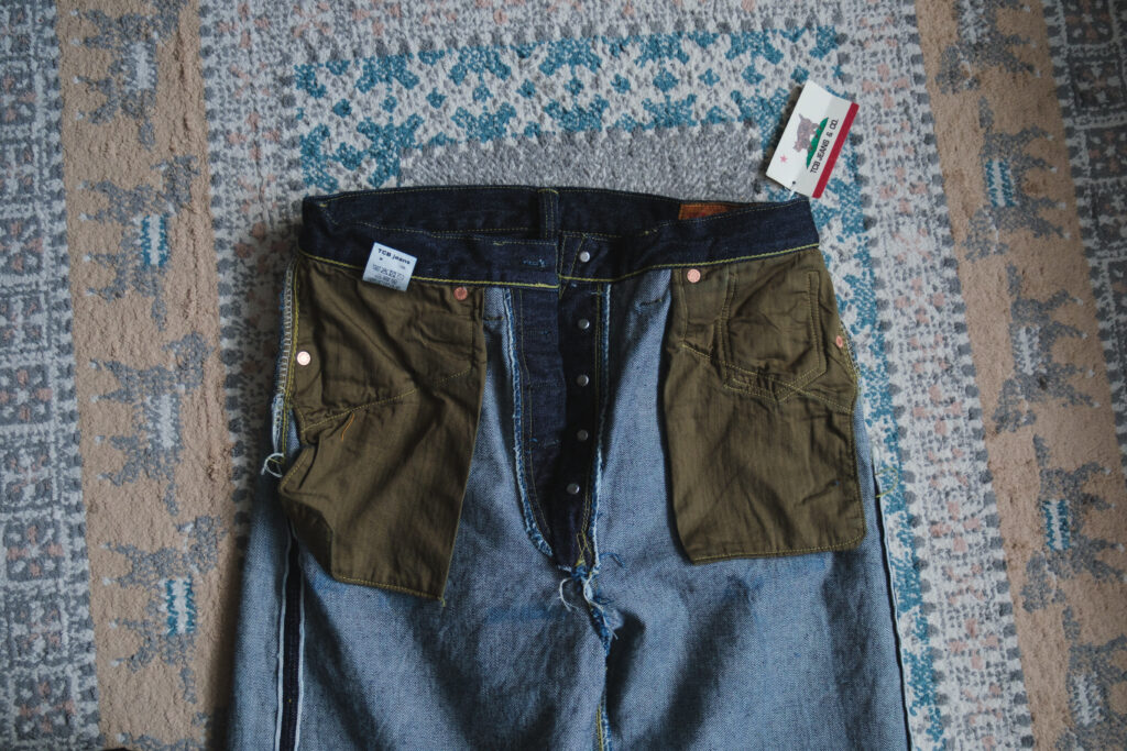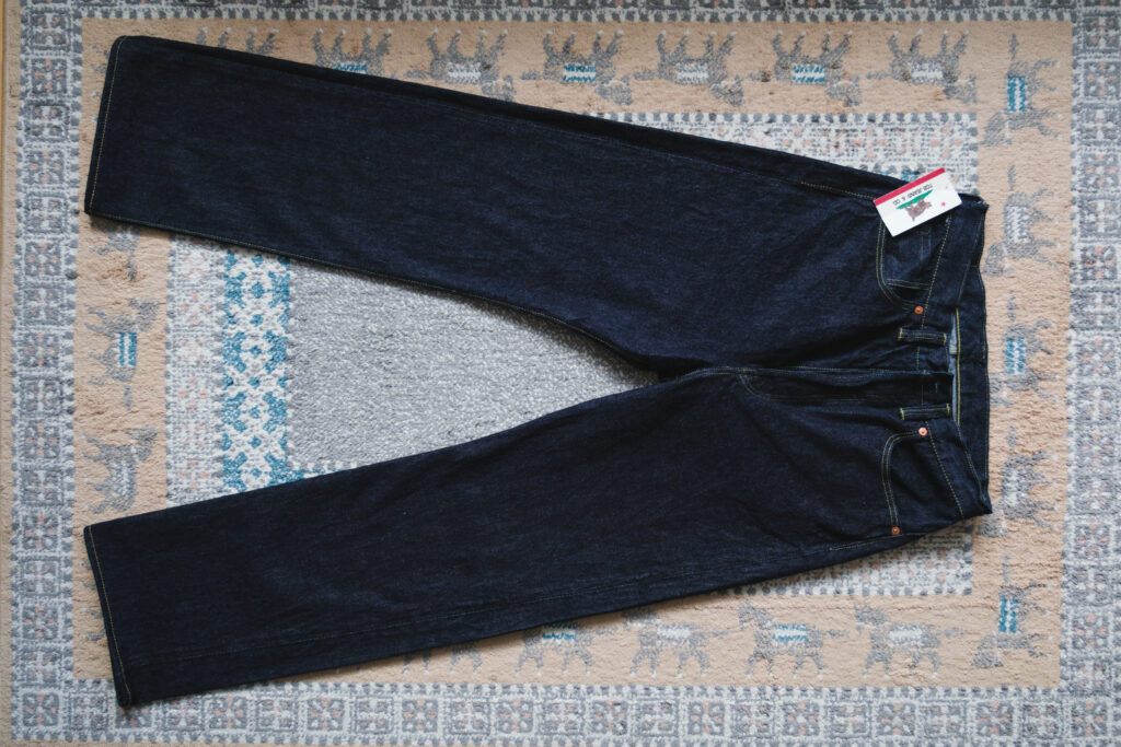 閉店間際にも関わらず、快く色々と試着させていただき、私はS40’s Jeans 14oz、妻はSlim 50’s T 13.5ozを購入。ちなみに、妻はデニムをほとんど知らず、リーバイスとエドウィンの違いも分かってないレベルですが、「ロゴの猫が可愛い」という理由からTCBをお買い上げしまして、初の本格デニムがTCBという素晴らしいデビューを果たしました。